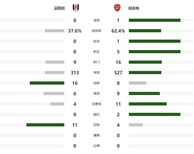 连续多个转会窗口期都投入重金补强的阿森纳,迟迟无法重返联赛霸主之位,让主教练阿尔特塔承受了非常大的压力,新赛季打造豪华阵容的利物浦,一度让枪手球迷认为冠军希望渺茫,不过开赛状态神勇的利物浦,突然陷入低谷期,各项赛事遭遇一波三连败,让阿森纳强势登顶,一跃成为了英超冠军的热门候选。本周末正处于四连胜的阿森纳,在英超第八轮联赛奔赴客场挑战富勒姆,本场比赛主裁判的吹罚引发了枪手众将士和球迷的不满,但阿森纳还是靠着特罗萨德的一剑封喉,1-0击败了富勒姆。在竞争激烈的英超联赛,阿森纳想要如愿捧杯,每一轮联赛都不容有失,此战的对手富勒姆,虽然在整体实力和过往交手的战绩上都不如枪手,但是他们最近2个主场面对阿森纳,保持了1胜1平的不败战绩,再加上富勒姆受到的FIFA病毒影响更小,让这一场比赛变得悬念十足。只领先利物浦1分的阿森纳,为了能够稳住自己的领头羊位置,在克拉文农场球场也是尽遣主力出战,在433的阵型中,让拉亚镇守龙门,廷伯、萨利巴、加布里埃尔和卡拉菲奥里构筑后防,埃泽、苏维门迪和赖斯坐镇中场,萨卡、约克雷斯和特罗萨德组成了进攻三叉戟。面对领头羊,农场主在主场丝毫不惧,一上来就拉开架势和阿森纳在场上对攻,并且在第10分钟率先制造杀机,劳尔希门尼斯在枪手禁区右侧的打门,被拉亚扑了一下后出了底线,不过阿森纳的回应也很快,第15分钟卡拉菲奥里杀到前场后,用一脚爆射攻破了富勒姆的球门,可惜越位在先进球被主裁判取消。第36分钟约克雷斯接到队友直塞后,获得了直接起脚的机会,可惜小角度打门角度太正,被富勒姆门将轻松化解,1分钟之后,卡拉菲奥里的抽射稍稍高出横梁,半场比赛结束前,出现了有争议的一幕,乔希金被队友不慎击中面部倒地,随后裁判却叫停了阿森纳的进攻,这也引发了枪手球迷的不满。易边再战,阿森纳在第50分钟创造出了一次极具威胁的进攻,萨卡右路下底传中,差一点造成富勒姆防守球员乌龙,5分钟之后,富勒姆还以颜色,威尔逊在点球点附近,接到队友传球后,直接凌空爆射,可惜没有压住,皮球直接飞出了底线。第58分钟阿森纳终于用自己最擅长的定位球战术,打破了场上的平衡,右侧角球开出后,加布里埃尔头球一蹭,后点的特罗萨德将皮球撞入富勒姆的球门,帮助阿森纳取得了1-0的领先,第65分钟萨卡强行突破造点,但主裁判回看VAR后取消了点球的吹罚。【比赛数据】余下的时间,双方均无建树,最终阿森纳如愿收获一场胜利,由于本轮稍早前结束的一场比赛中,曼城主场完胜埃弗顿,多赛一场超越阿森纳登顶英超积分榜,随着本场比赛的结束,枪手也夺回了英超第一的宝座。